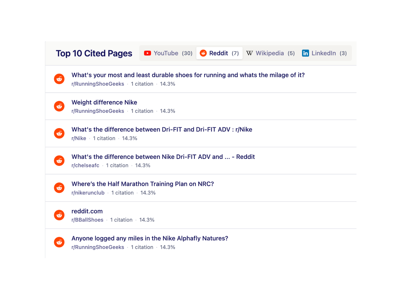 Reddit, LinkedIn groups, niche Slack communities — AI models with live retrieval (Perplexity especially) pull from these regularly. Being genuinely helpful in relevant communities builds organic mentions that feed directly into AI-generated answers. This isn't about spamming product links; it's about being the person who gives the useful answer.