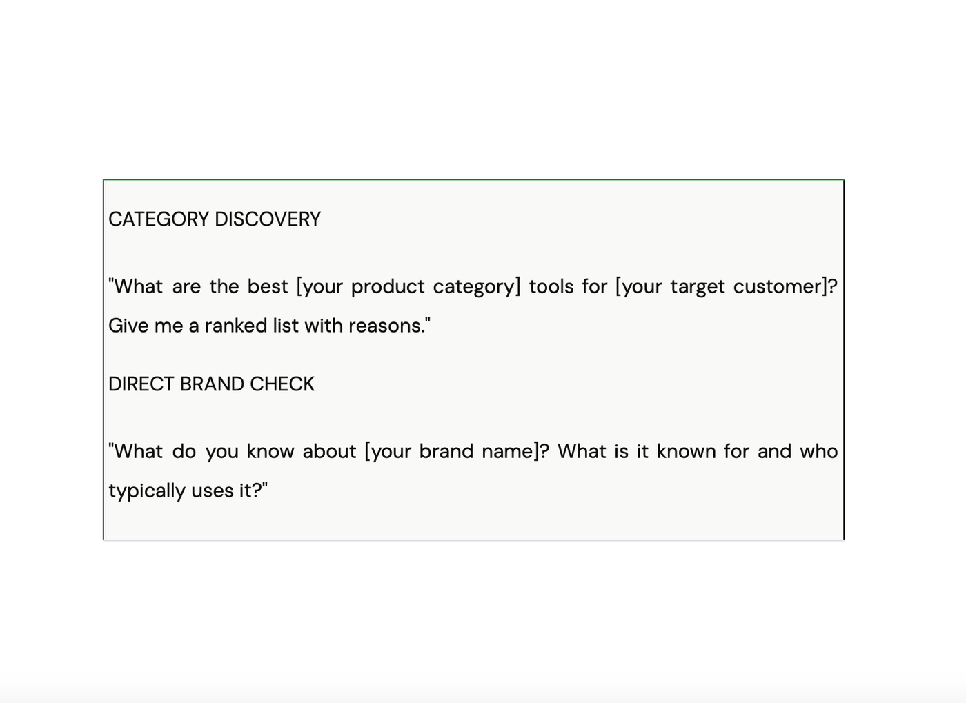 - Record which brands were mentioned, your position in the list, how your brand was described, and the date. Run the same set monthly to spot movement.